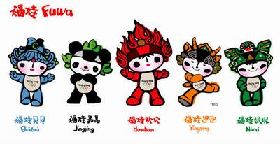 很久以来,中国就有通过符号传递祝福的传统。北京奥运会吉祥物的每个娃娃都代表着一个美好的祝愿:繁荣、欢乐、激情、健康与好运。娃娃们带着北京的盛情,将祝福带往世界各个角落,邀请各国人民共聚北京,欢庆2008奥运盛典。