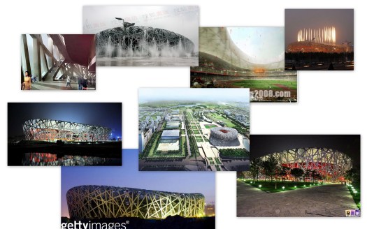 “鸟巢”是2008年北京奥运会主体育场。由2001年普利茨克奖获得者赫尔佐格、德梅隆与中国建筑师李兴刚等合作完成的巨型体育场设计,形态如同孕育生命的“巢”,它更像一个摇篮,寄托着人类对未来的希望。设计者们对这个国家体育场没有做任何多余的处理,只是坦率地把结构暴露在外,因而自然形成了建筑的外观, 建筑形式与结构细部自然统一。