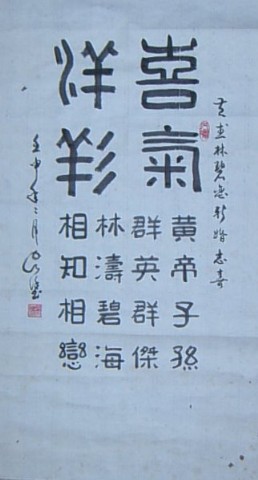 我从小喜欢看字,也比较注重写字。但是,除了小学时候习过字,却未曾拜过师,临过帖,平时也不常写,这当然指的是毛笔字。只是无论走到哪里,都会留意商家招牌或门上好看的字,奇异的字,驻足揣摩一番,还有书籍杂志,甚至旧报纸或包装纸上的字也不放过,这大概就是“心摹”了吧。如此这般,久而久之,我从小在所处人群里就被认为写字好手了。后来在工作的千人单位里,还被推举为书画协会副会长兼秘书长呢,也是山中无老虎,猴子称大王了,哈哈!也因此,遇有单位里举办书法展,或省里本系统的书法展,都会去凑凑热闹。不过,每当这个时候,大都不是一笔而就——写完了总会觉得哪里写得不好,再写,原来不好的地方改进了,可又会出现新的毛病,每次写2-3幅是常有的事,总之,难得满意。于是,只能劣中求好,勉强挑出一幅凑数了,这大概就是所谓“眼高手低”吧。