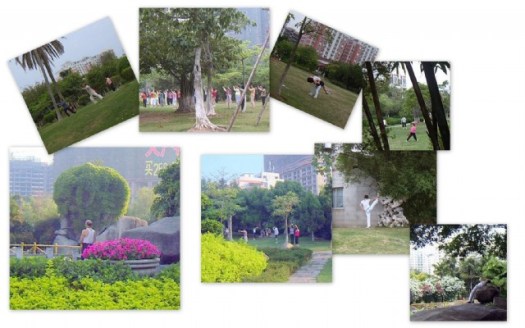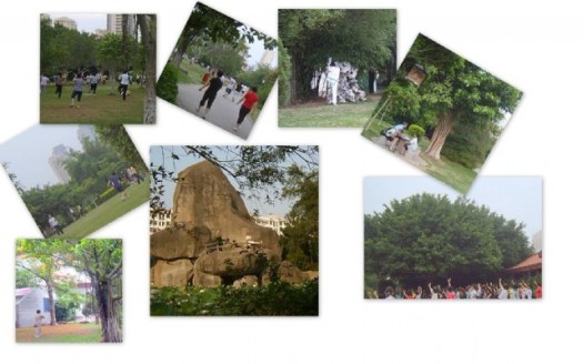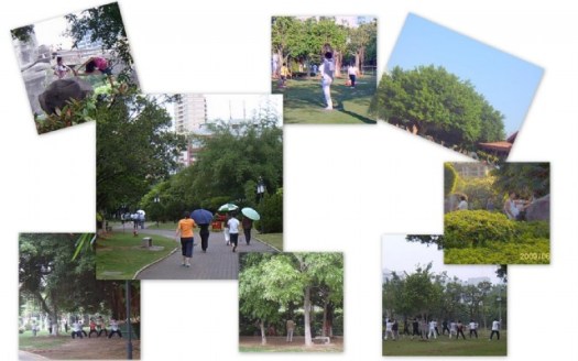 现在不睡懒觉了,每天早晨六点起床,走出大院便起步慢跑。起初我还以为很早,其实不早了啊,已见有人晨练完毕归来了。跑到公园——啊!几乎所有角落都是晨练的人们——有慢跑有走步,有太极有跳舞,还有羽毛球、排球、舞剑、踢毽、体操……花样是应有尽有。于是我便带着相机,留下一些美好的印象,还录制了一段鸟语,与大家共享了。