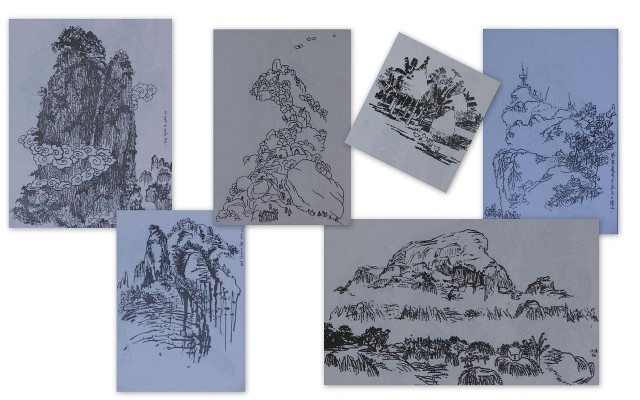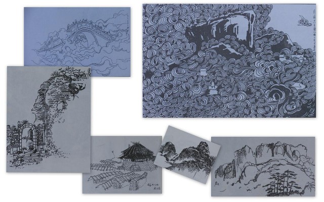 自右上向左:武夷怀旧//三平桥//霞寨火烧楼//一砖一瓦//狮子峰//灵通雄风