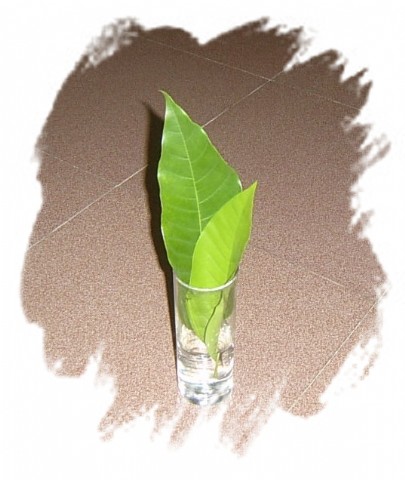 花瓶里有苍翠的玉兰叶一片