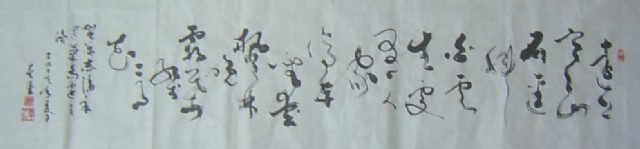 小陈为新居的装修早就说了给他写两幅横披,还说就写唐诗“远上寒山……”及“白日依山……”。这于他是自有偏爱,于我却心里暗乐——因为写过不止一 次了,所以比较的驾轻就熟,不用翻查字典什么的。由于平时很少写字,待到动笔时,往往很难有自己满意的作品。如果是写过了的,那写起来就比较有把握些。自 己觉得每写一次都有所长进,看起来顺一些。忽然想起,曾见过一幅栩栩如生的“虎”字,据说是写了一千幅才得来的上乘之作……一千幅啊,啊啊,可见手上功夫 得来之不易。