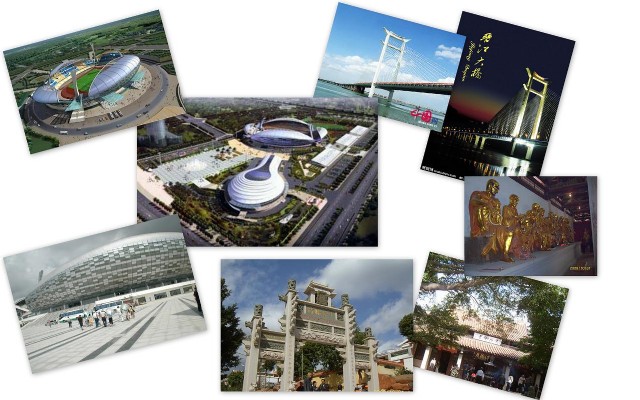 泉州晋江大桥是世界第一座“开”字形斜拉桥。它于2005年5月开工建设,2008年10月24日试通车。也是泉州的“新地标”建筑。大桥北端起点与市区泉秀东街相连,南岸连接晋江市、石狮市及沿海大通道。大桥全长3.6公里,宽度33米.其中主桥大桥(含主桥\引桥)总长2740米,主桥365米。大桥主桥梁体为双波浪鱼腹式结构,具有线条流畅美观、抗台风能力强等特点。大桥主塔高134.125米,采用“开”字形钢筋混凝土结构。