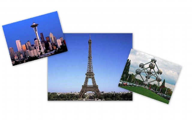 以往的很多世博会都留下了在建筑史上举足轻重的标志性建筑。 在众多标志性建筑中,最经典的三个应该是法国首都巴黎的艾菲尔铁塔、比利时首都布鲁塞尔的原子球(馆)以及美国西雅图的太空针(塔)。这些标志性建筑物在会后仍散发着无穷的风采和魅力。