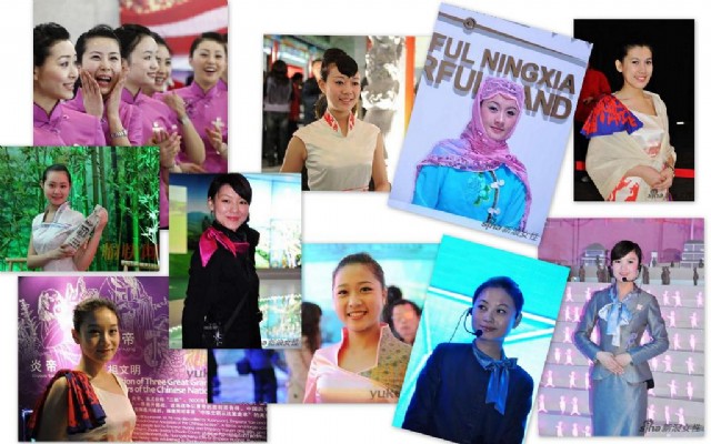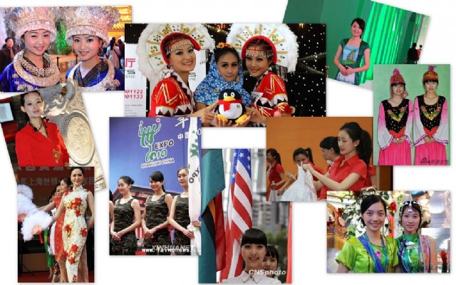 ……在上海世博园中,除了精彩纷呈的展馆之外,众多美女也成为了世博园中一道靓丽的风景线,她们大都长相甜美、靓丽端庄、气质非凡、光艳照人!走进31省区市馆,不禁让人眼花缭乱,只见每个展馆前都站着美女引导员,她们穿着各具特色的制服,笑迎参观的客人……啊,引导员、志愿者、礼仪小姐、讲解员、记者、演员……可谓目不暇接,美不胜收,真真让人一饱眼福呵。此等风采,更有人称之为“美女集中营”呢。另据报道,在世博会开幕前夕,参加2010年度全球小姐国服总决赛暨全球中国小姐总决赛的佳丽们,在风光秀丽的张家界参加“相聚张家界、欢庆世博会”签名活动,用不同国家的文字、语言,欢庆世博会召开,祝福伟大的中国。来自56个国家的56位佳丽们在印有她们照片的巨幅喷绘上,各自签名。56个民族的代表和上千名国内外游客也在上面签名;同时还进行了上海世博会吉祥物“海宝”传递活动,为上海世博会呐喊助威……