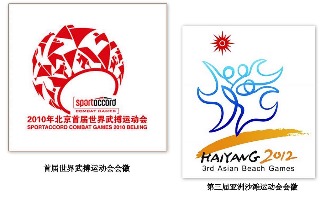 另外,会徽主体图案运用线条的魅力勾勒出沙滩排球、沙滩足球和游泳三项运动的姿态,凸显了亚沙会的竞技性;而会徽下方一抹黄色所象征的金色沙滩,则与上面运动的人体、灿烂的太阳共同勾勒出一幅典型的沙滩运动会情景,体现了沙滩运动激情、阳光、时尚的独特魅力。