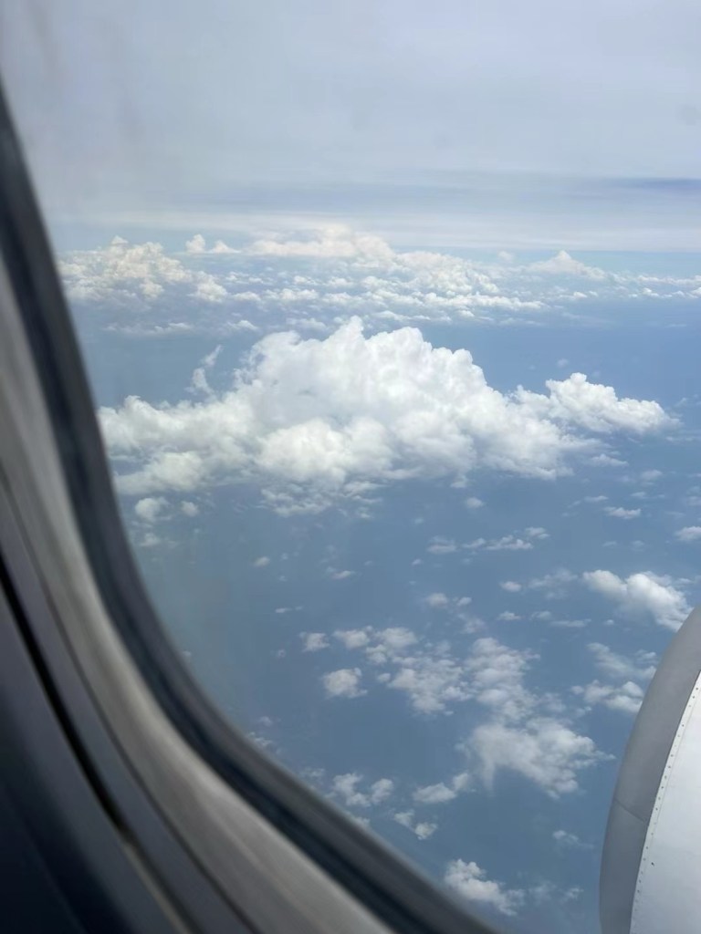 今天早晨6:25,山景和文青到家里接我们到晋江机场。八点四十分起飞,天气晴好。望机舱外,云顶之上,好像波涛滚滚。中午12:40抵达新加坡樟宜机场。飞机落地时,外面还有一点小雨,但一走出机场,天气又变成了大晴天。
