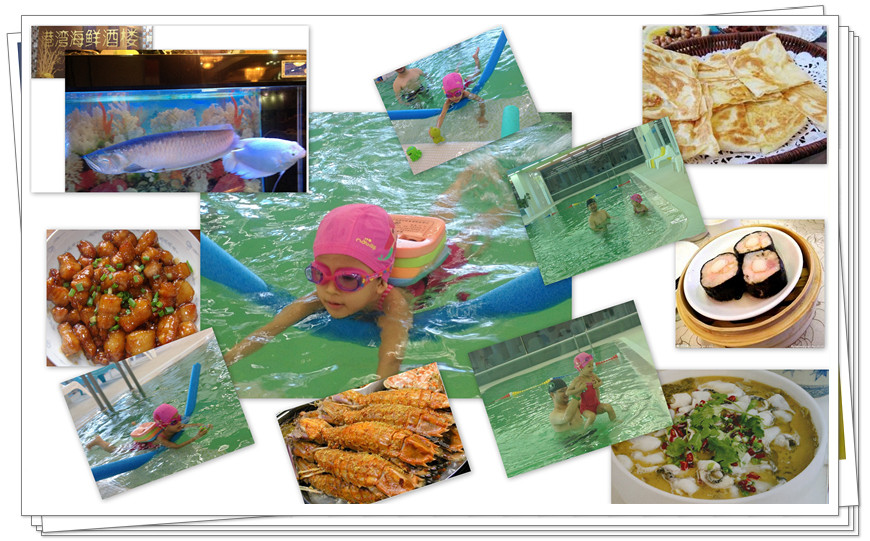 Posted on 7月 31, 2018泡泡的游泳日 20140901微信:暑假以来每周五是泡泡的游泳日——那游泳馆比较正规,有专业教练,有恒温消毒泳池。她很喜欢下水,一下泳池就满兴奋的。常常好几天前就直盼着周五的到来……几天前她说:下次爷爷奶奶也去看我游泳好吗?于是上周五全家人都陪着去了……中午在外就餐——个人觉得,蟹柳紫菜卷味鲜爽口最好吃,榴莲薄饼香甜适中次之,虾蛄虽也不错但其壳却难剥也……